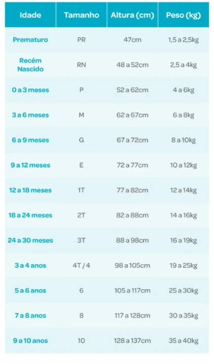 A modelagem da camiseta de praia bebê e infantil com proteção UV Tip Top é justa. Abaixo colocamos as medidas das blusas. Considere sempre uma pequena diferença de até 1cm. Em caso de dúvidas, sempre opte por um número maior que a criança usa.